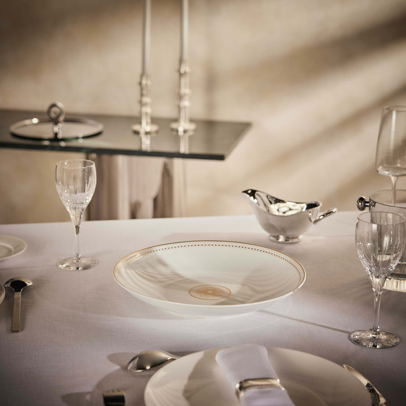 Elevate every occasion with the timeless elegance of Christofle porcelain. To preserve its beauty, use a low-temperature (eco) cycle with light powder detergent and store it carefully by placing a thin sheet of paper between plates and avoiding excessive stacking. Handle pieces with gold or silver accents with extra care, as they are not dishwasher-safe. With proper care, your porcelain will stay exquisite for years.