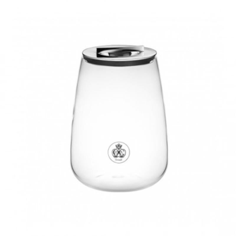 Medium jar in silver plate and borosilicate glass. The transparency of the glass allows you to see the contents stored inside. The Silver Time jar is available in 3 sizes: small, medium and large.